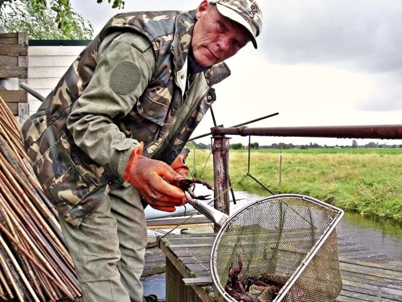 „Vijf jaar terug konden er enkele in mijn netten zitten, maar tegenwoordig zit het halve net ermee vol. De héle Krimpenerwaard is ervan vergeven.” De kreeft heeft hier nauwelijks natuurlijke vijanden. „Ik zie weleens reigers ermee in hun snavel, die zijn de enige, denk ik.”