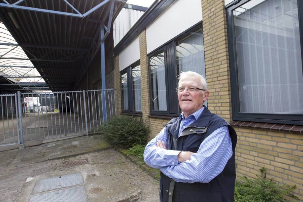 „Die witte tegelwanden met een rode band bovenaan zag je overal in het bedrijf”, wijst hij in een loodsdeel dat door een garagehouder in bezit is genomen. In de huidige inventaris doen de wandtegels vreemd aan.