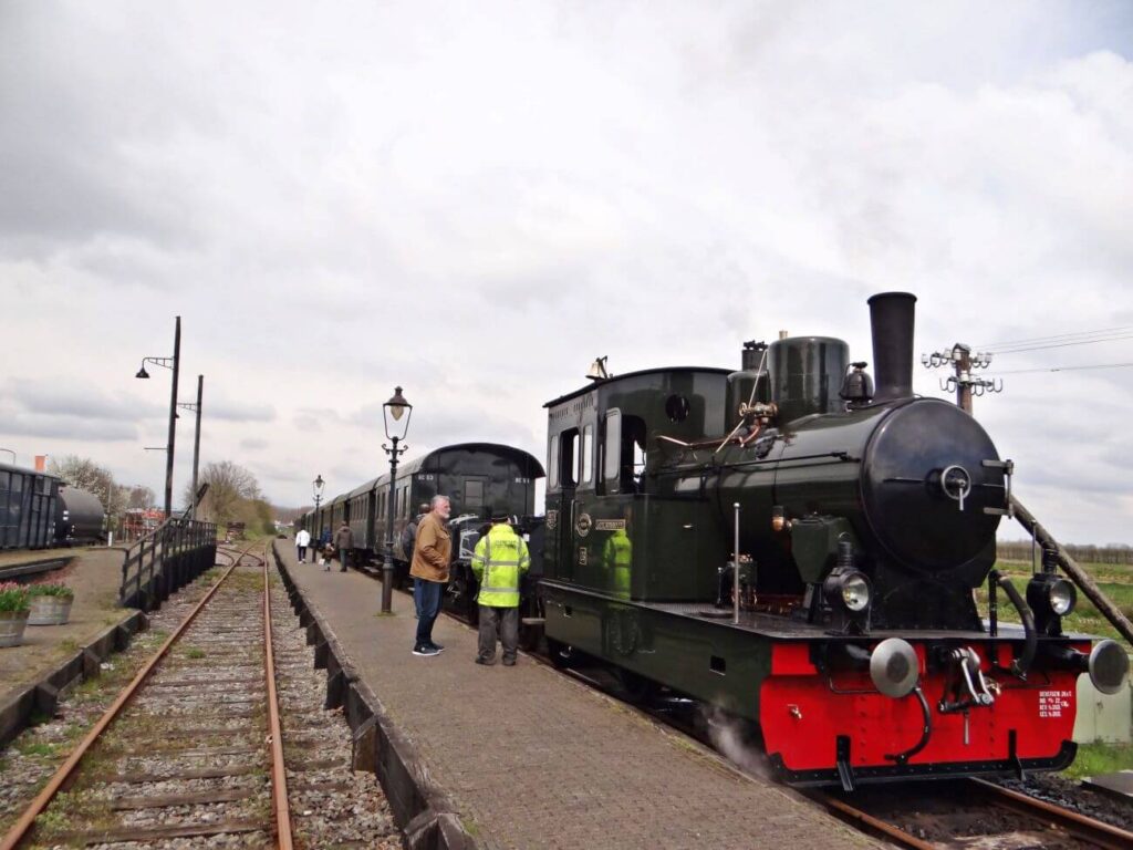 Die wereld betreden de bezoekers als ze aan boord van een van de historische wagons gaan. De voorste: dan kun je de stoker en de machinist goed zien.